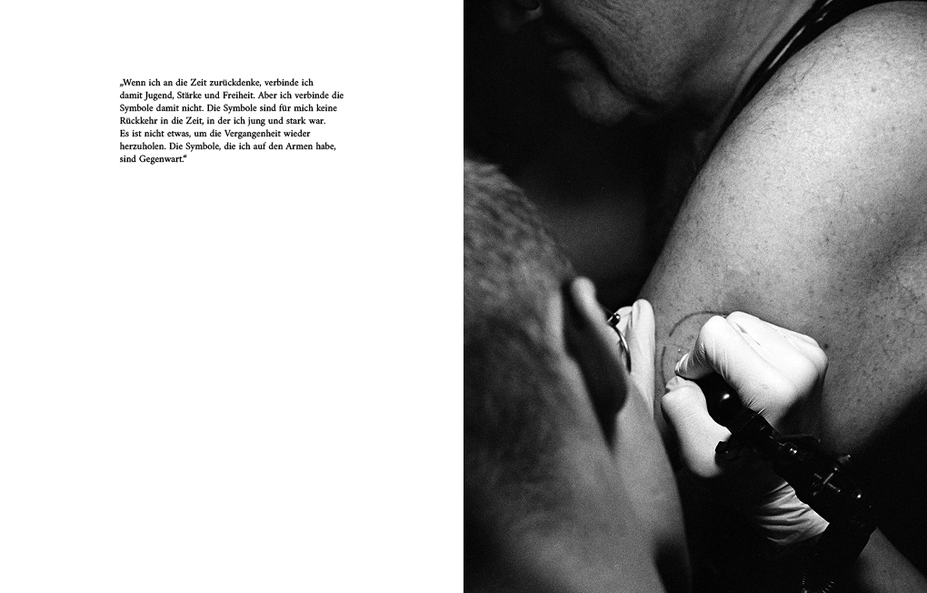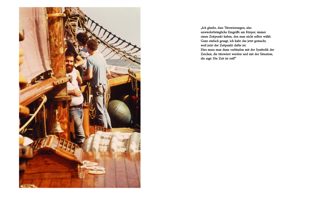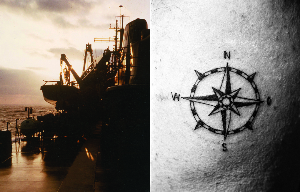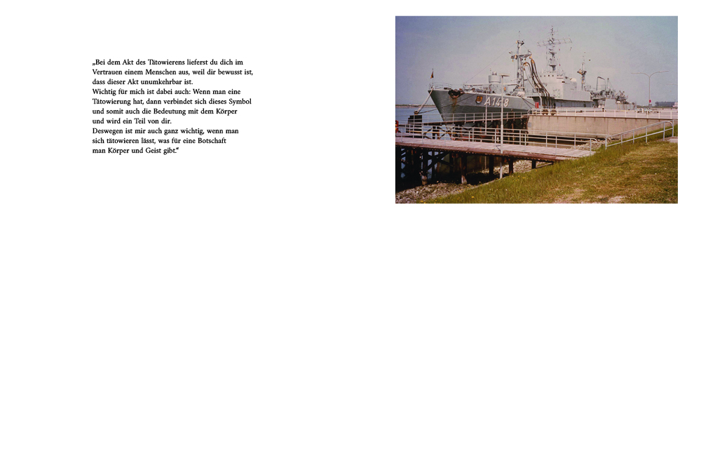 Everything started with the question: „Why are you getting tattooed at your age and why did you choose the anchor and the compass as motives?“ and ended up as a philosophical confrontation based on my father’s experiences in seafaring and topics as crossing borders, setting destinations and arriving at someplace, as well as disaster management and trusting in oneself and others. Thereby the project attends to the importance of symbols in the tattoo cult as a reinforcement for body and mind.