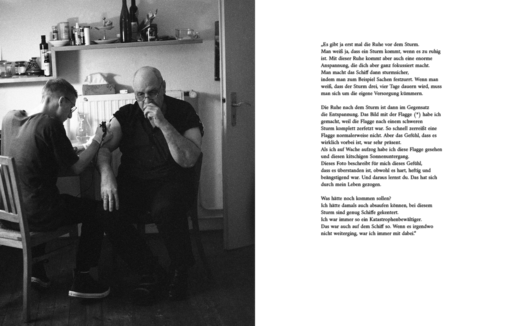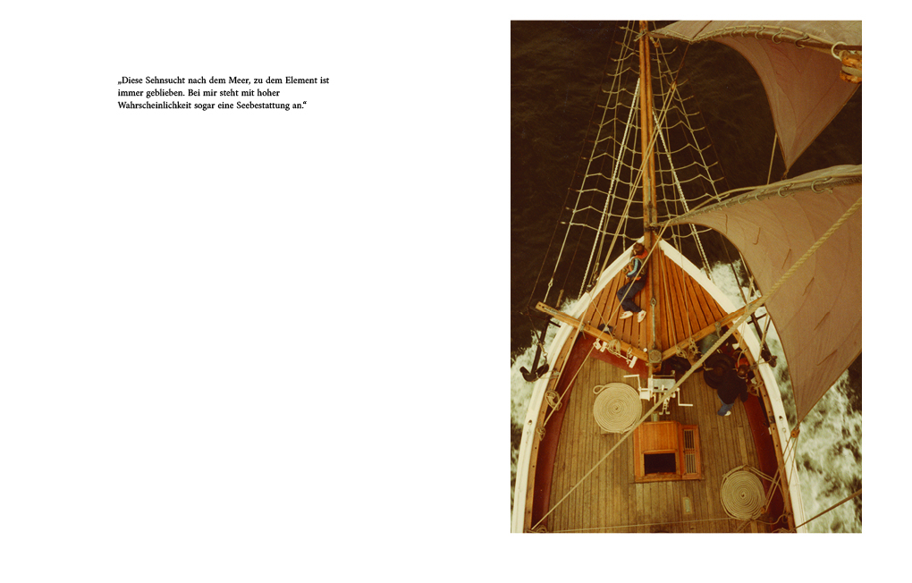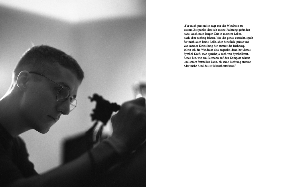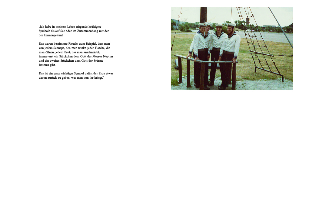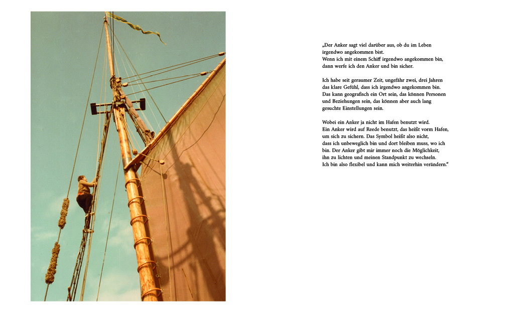 „Ohne Kompass keine Richtung; ohne Anker keinen Halt“ („No Direction without a Compass; no Stability without an Anchor“) is a personal journey to my father’s present and past, which he connects by making use of the power of marine symbols.