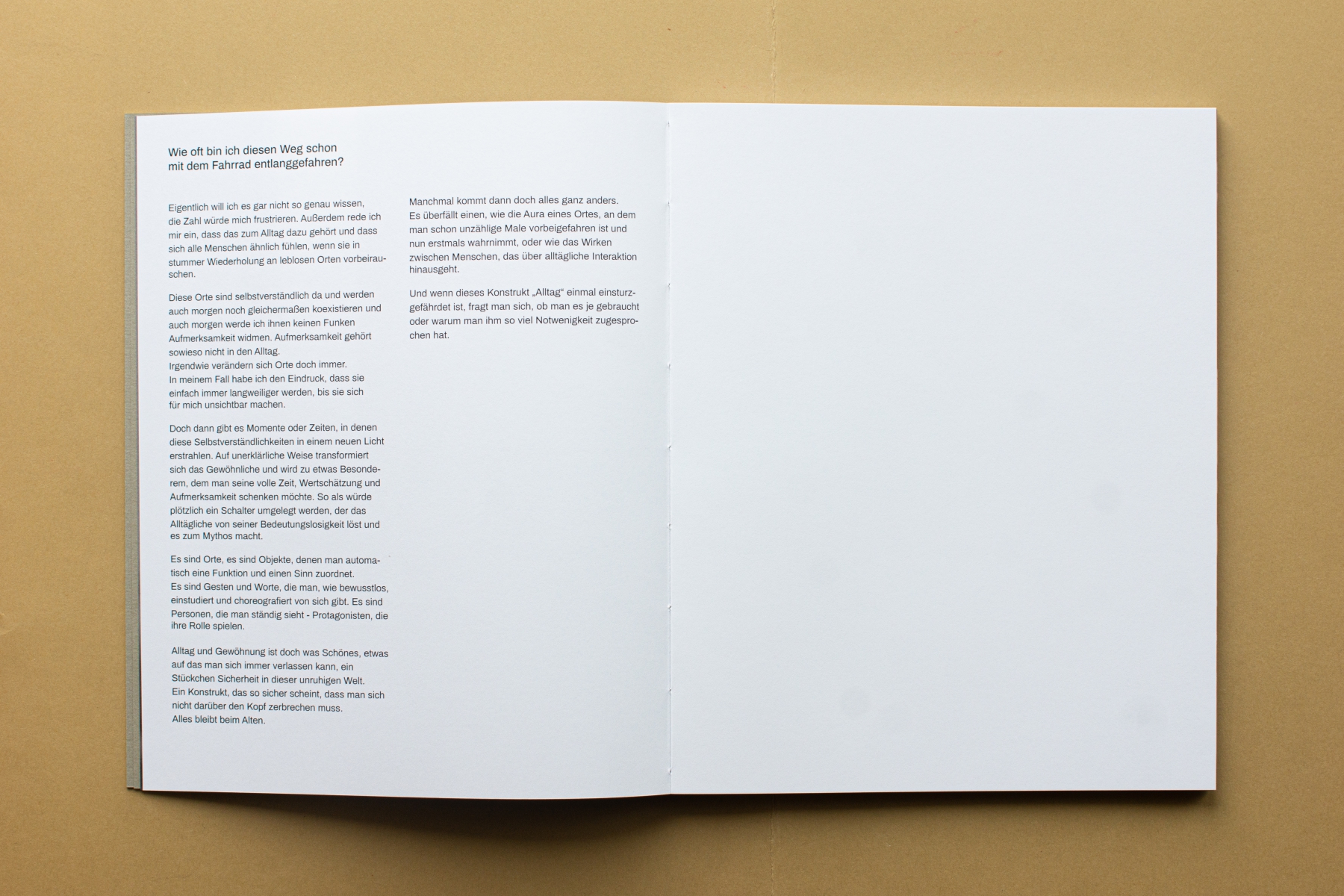 „Die Dekonstruktion des Alltags“ („The Deconstruction of everyday life“) deals with a subjective perception of our common and obvious surroundings and how they can suddenly transform themselves into myths. The images, which are modified and deconstructed in several ways, should symbolize that phenomenon and turn it into a magic narrative, but always referring to „reality“ and the ordinary. In a time, in which the everyday life and the structure and repetition that go with it, seems to be indispensable and necessary, people are seeking to break loose from it. Appearing from nowhere, a specific moment sometimes reminds us to be more conscious, to see and recognize little changes, and finally giving ordinary places, words, gestures and interactions a new spirit, dynamic and value.