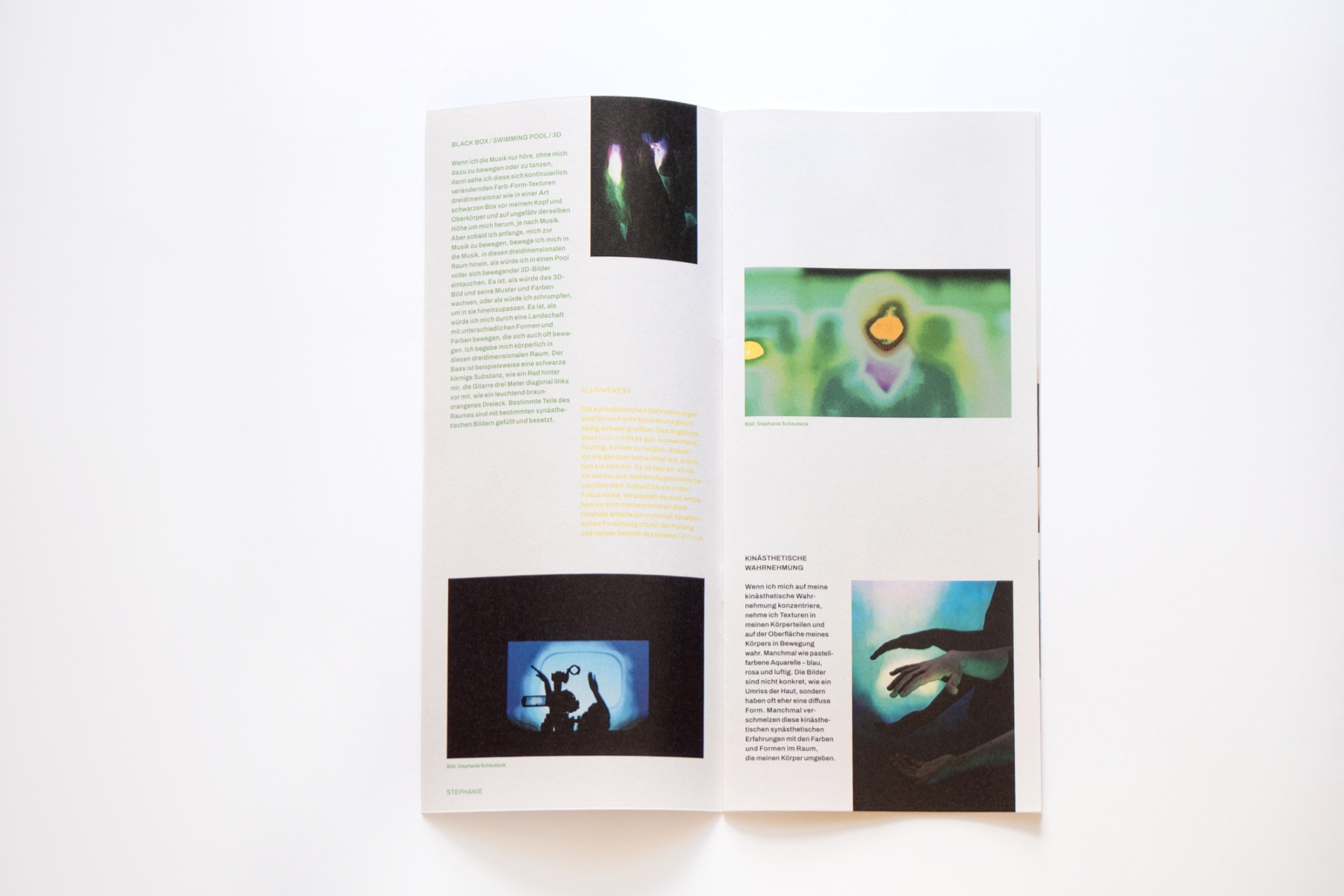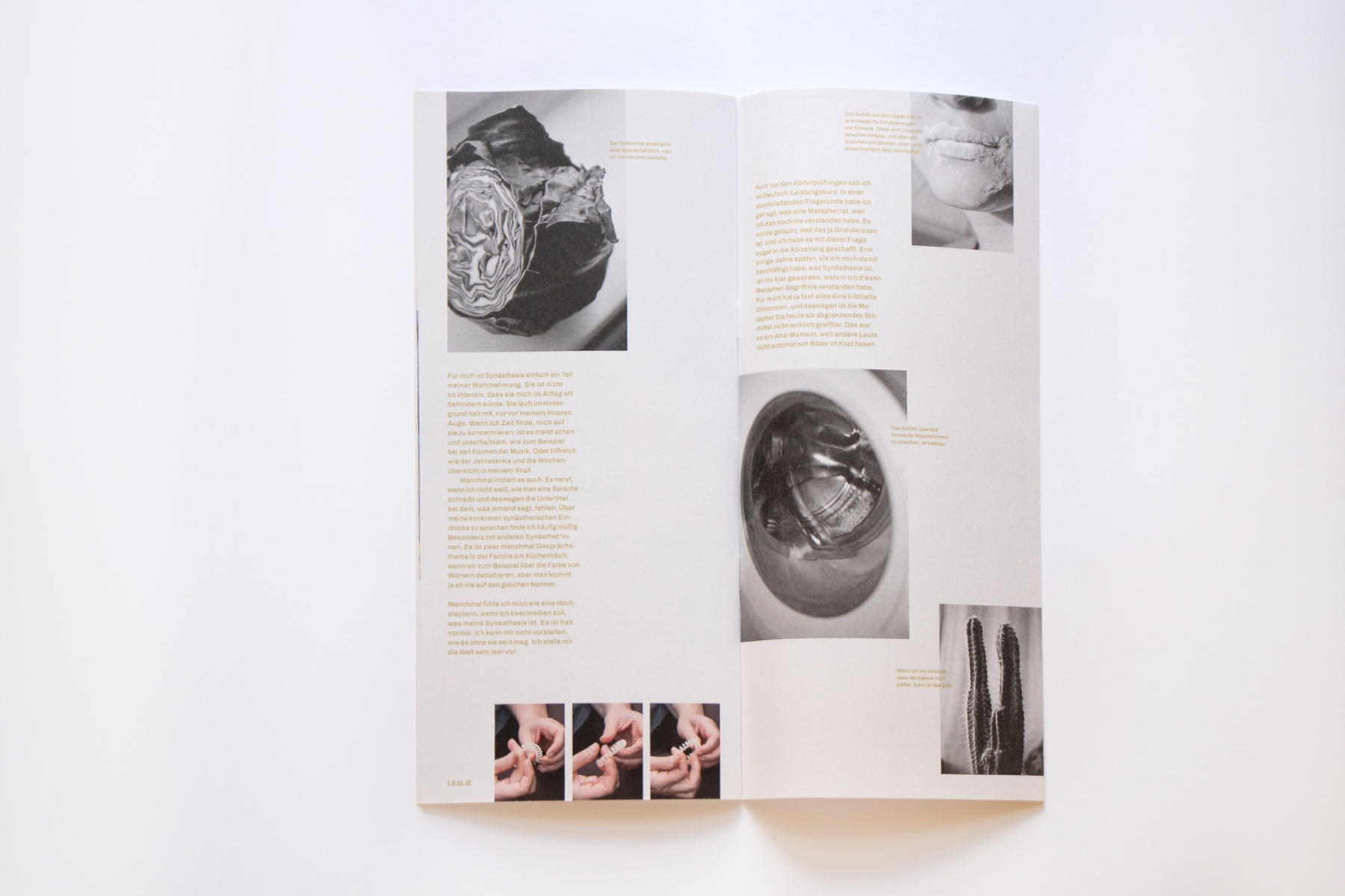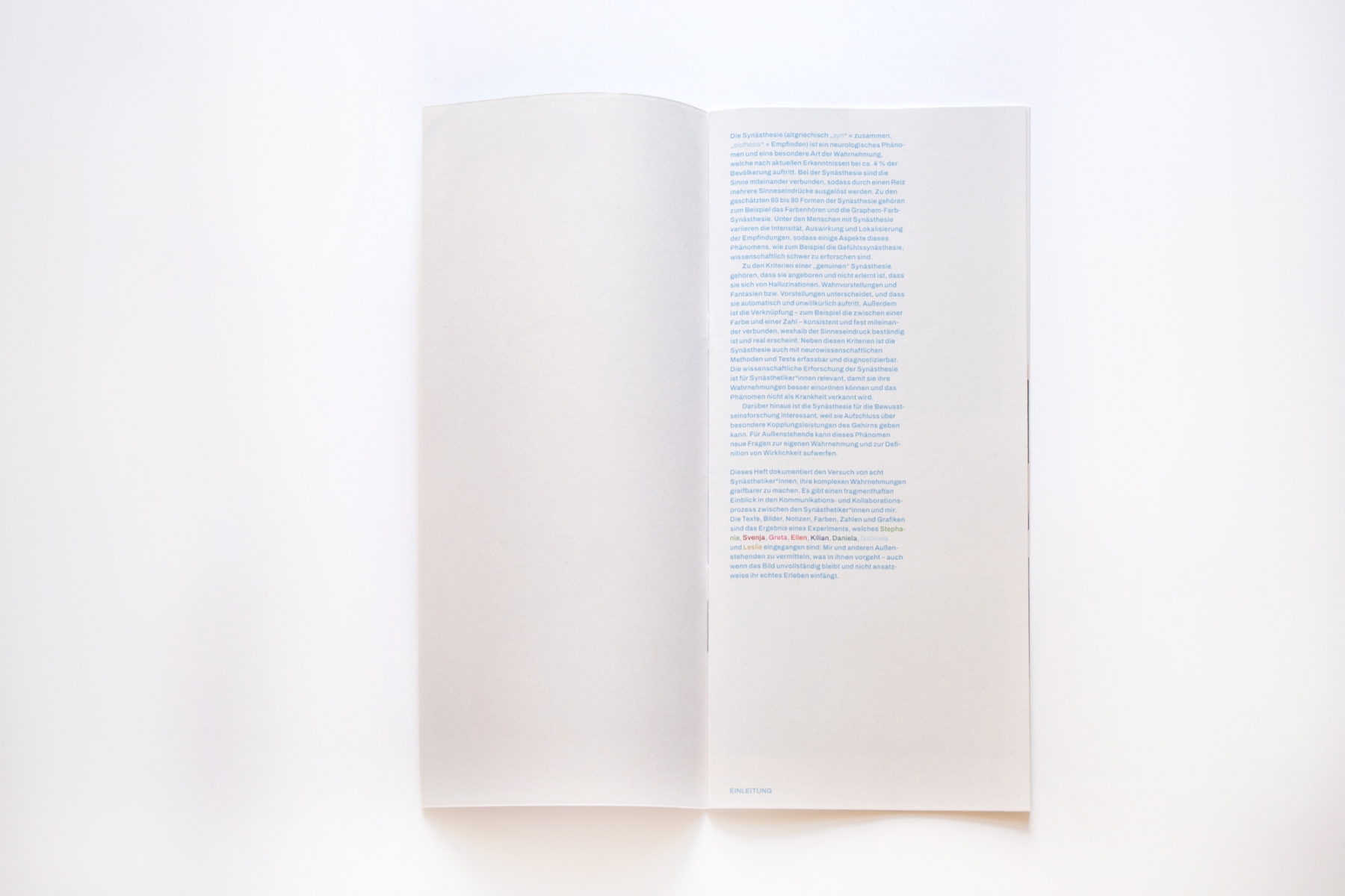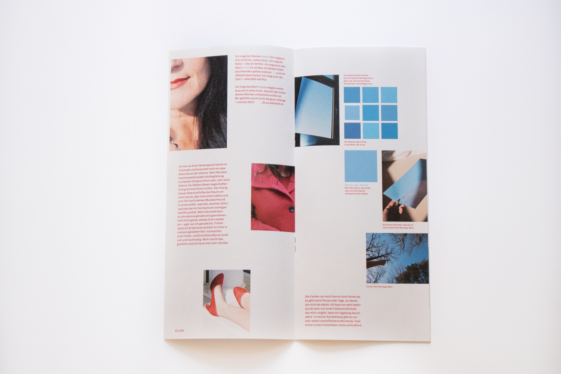 How can I be sure that other people think, feel, see, smell, and taste in a way similar to me? How much can another person’s perception differ from my own subjective experience? The neurological phenomenon of synaesthesia is an example of the complexity and diversity of human perception. In synaesthesia, the senses are interconnected, so that a single stimulus can trigger multiple sensory experiences. In conversation with eight synaesthetes, I realized how subjective the various synaesthetic sensations are and how difficult they are to represent or reproduce. The verbal exchange between myself, as a non-synaesthete, and people with synaesthesia provides the basis for the photographs. These images are a way of processing and interpreting sensory experiences that I can never directly live through or feel myself. Yet through these encounters and conversations, I was able to discover my own perception a bit more. The descriptions inspired me to examine my perception in everyday life: Does the voice sound rough or soft, sour or sweet? What sound does this red colour evoke in me? What does Thursday taste like?