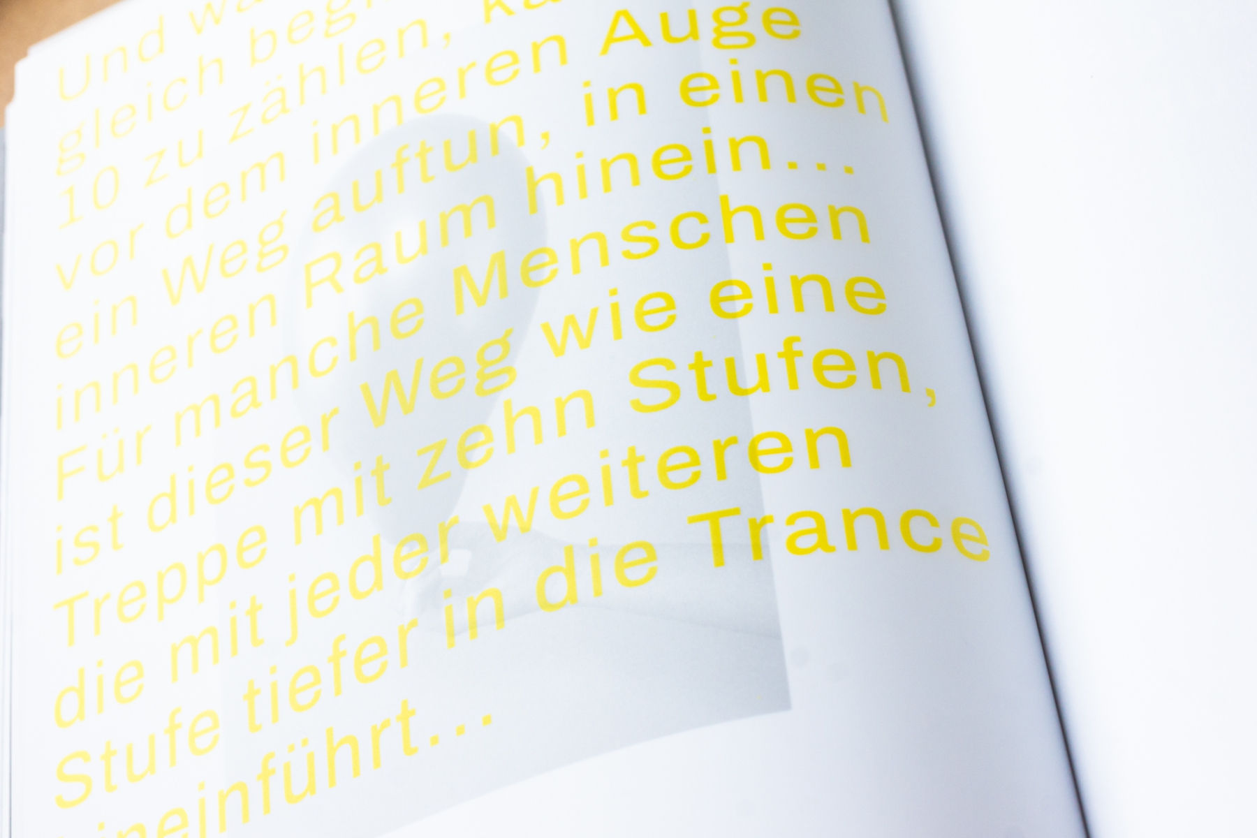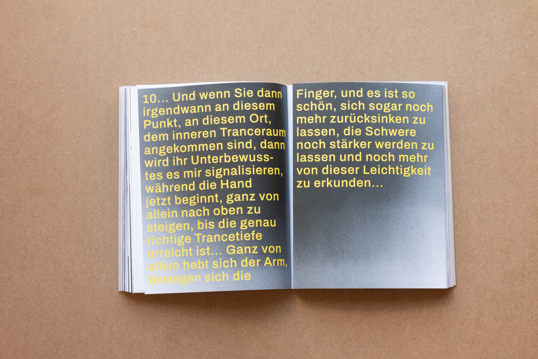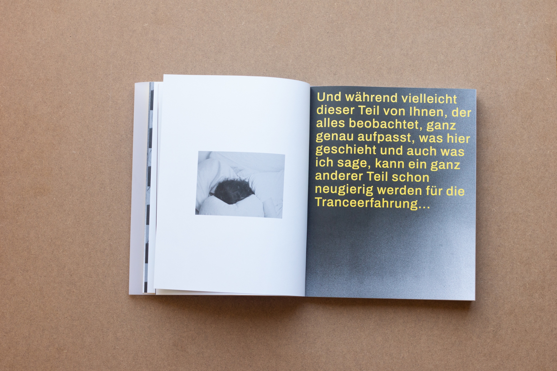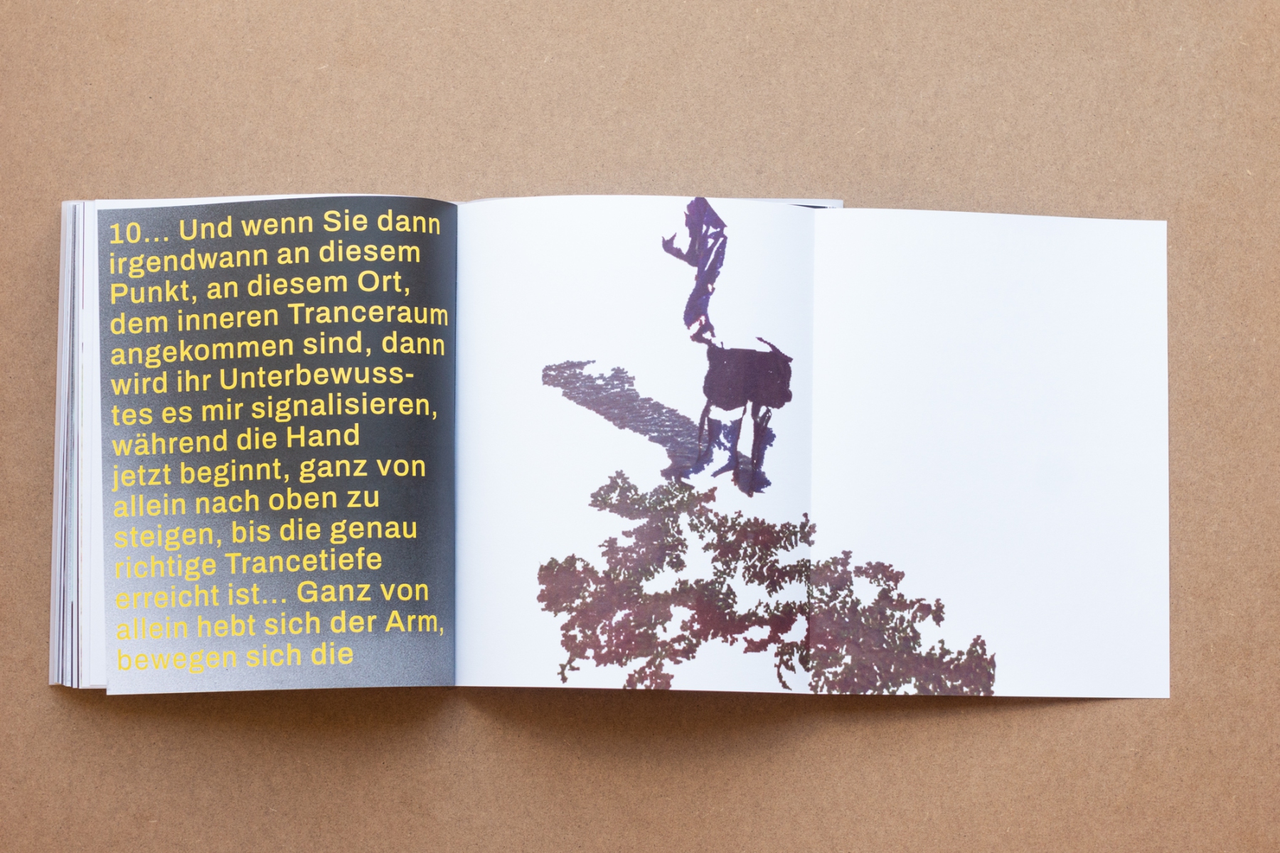 The photographic work guided by this approach moves between associative, subjective visual experiences during and after the trance and linguistic means and physical phenomena of hypnosis.